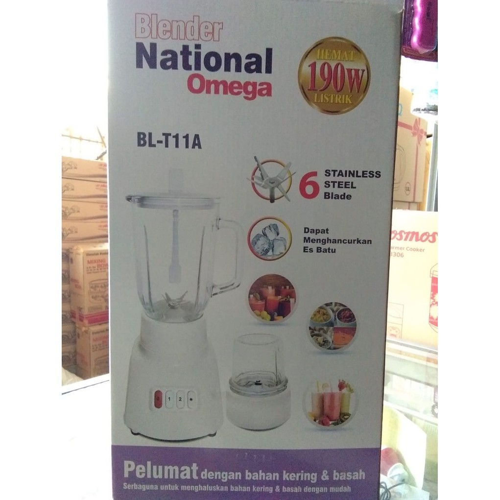 Blender Kering N Basah Juicer Ice Blend Pelumat Omega National 2 Tabung Gelas Kaca 6 Pisau Bl T11a Shopee Indonesia